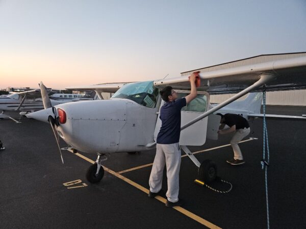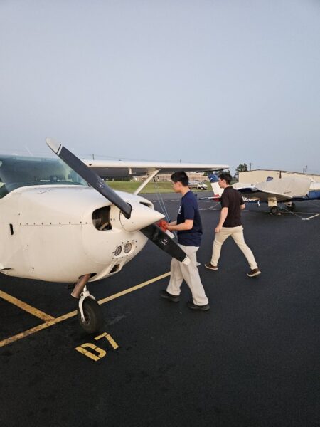 We flew back to Leesburg airport, and my mom took a couple more of photos of me with my CFI, who worked with me heavily in July to help me finally complete my solo flight. When we left Leesburg, it was past 9pm, and I felt pretty great for my solo accomplishment!